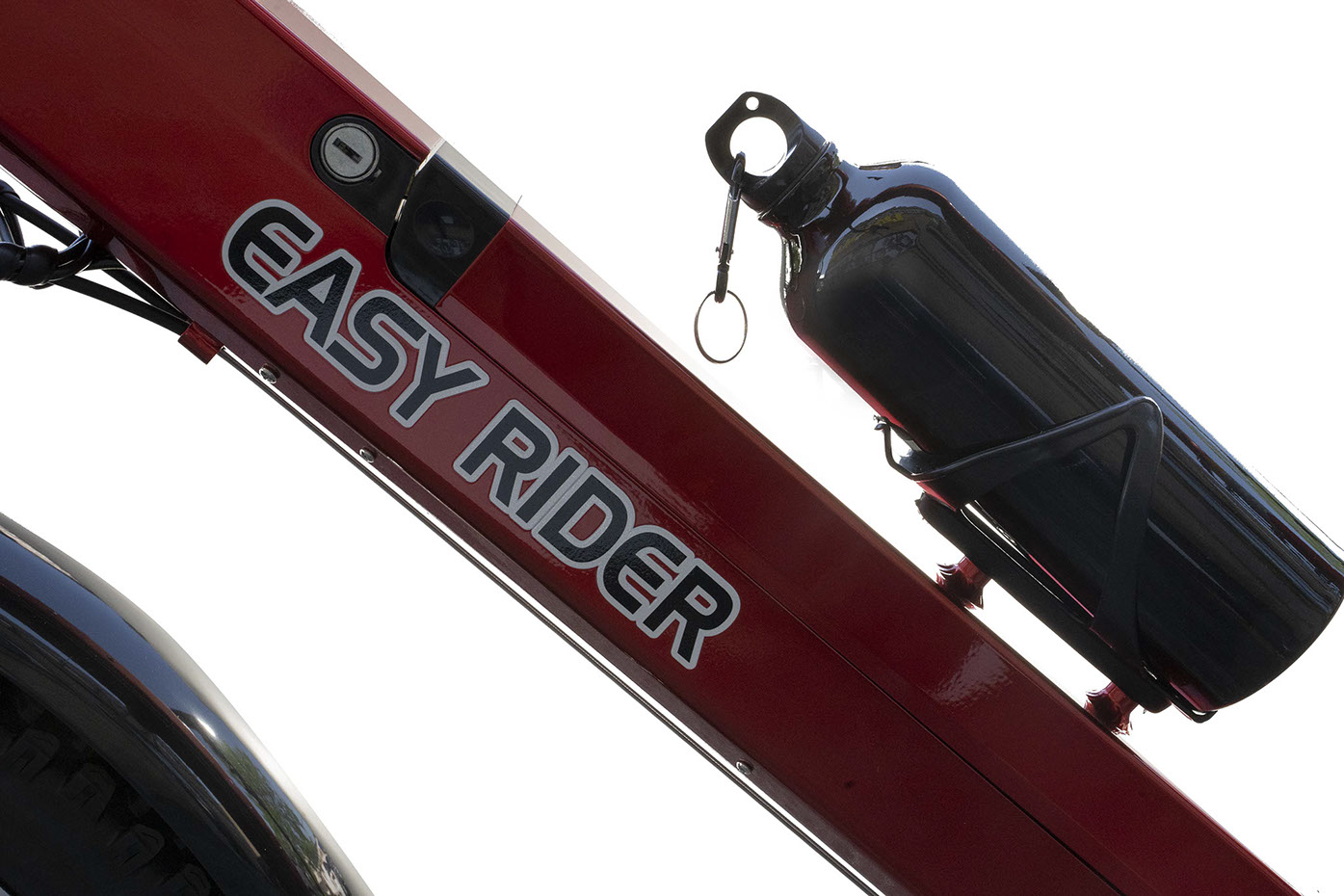 With the Daymak Easy Rider, you get a 48V lithium battery pack that fits seamlessly into the frame of the bike. It also comes with a bottle holder built on to it! Bonus!
